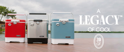 Cheers to the most classic, best-looking party companion. The vintage cooler-inspired Legacy — with a sleek, steel exterior — has a timeless design with modern features, including advanced insulation and Cool Riser Technology® and convenient details, like a built-in bottle opener, lid lock and a drain plug.