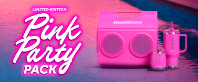 Ready to paint the town in pink fizz? Our limited-edition color takes over the party with a fan-favorite cooler and essential drinkware. Don’t procrastinate on this though. This pink KoolTunes, pink Travel Mug and pink Wine Tumbler won’t be around for long…